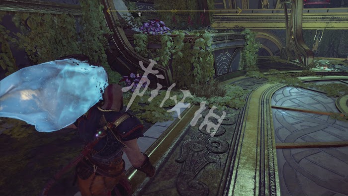 從大廳邊上的符文牆爬到第2層,找到鐵鍊處順手將鐵鍊放下。走到鐵鍊旁的欄杆露臺處。在這裡的視角就可以吸收到光球頂部的赫爾之風,吸收後將其轉移到光球下部的捕風陷阱上。