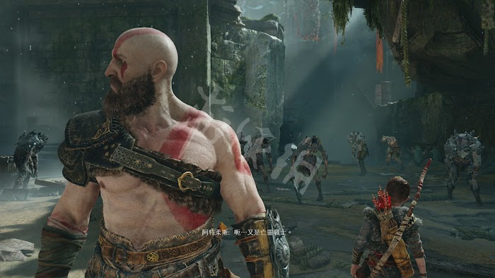 擊敗第一批亡靈戰士後,會出現全身發藍光的人系敵人,與亡靈戰士最大的區別在於這類敵人能使[利維坦之斧]的攻擊完全無效,所以對付這類怪物就收起斧頭用拳頭進行攻擊吧。通過與阿特柔斯的射箭配合快速積累昏迷值後,用終結技將其斬殺。