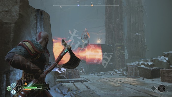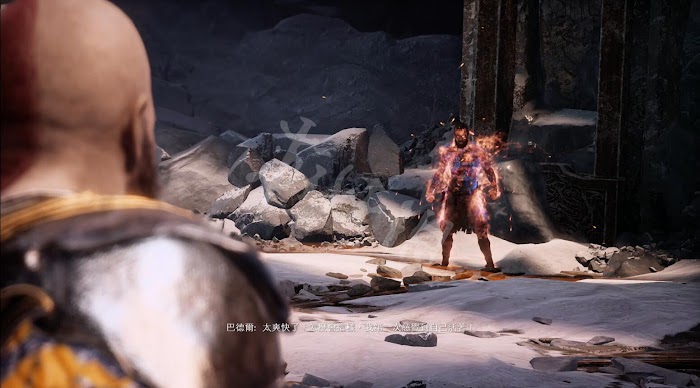 完成qte後進入最後的戰鬥階段。這一階段巴德爾會在冰霜和火焰狀態下不斷切換玩家也要根據他的形態切換武器進攻。不過2個形態下的招式沒有任何區別按照之前的方法應對即可。