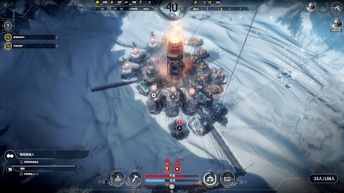 開局工作安排好,就來第一次基建,如下圖,首選開始建築是2個收集站。收集站可以用更少的人口,更安全性的保障工人工作,比你在冰天雪地裡工作 出現凍傷的幾率大幅度下降。更重要的是造點挖完地圖上這些資源,對我們區域規劃有好處,你不想到時候造個東西有個木箱擋住你吧。。