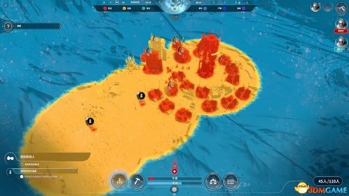 通過點擊建築、資源來分配可用人口進行採集和工作。