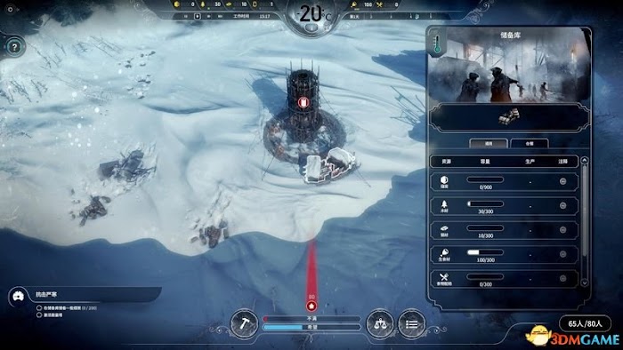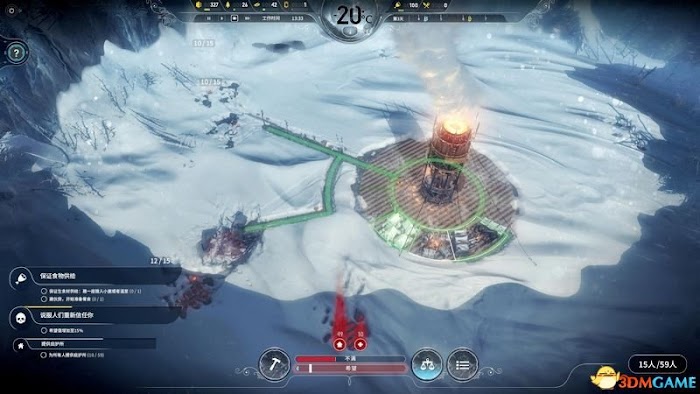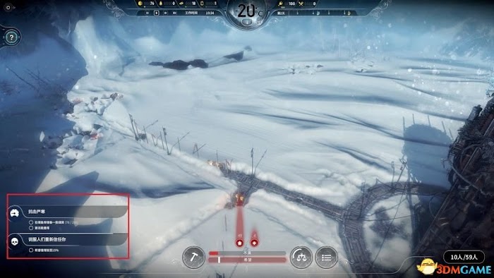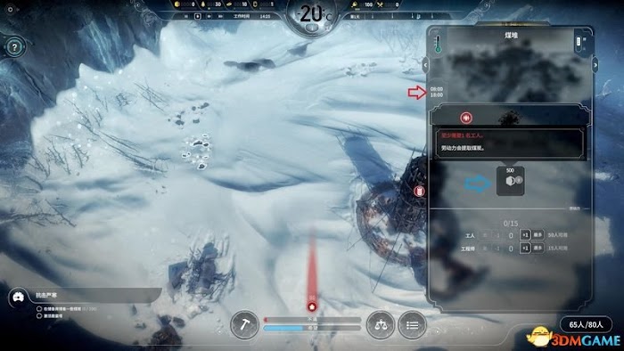 注意錘子圖示旁的箭頭所示的道路圖示,在雪地中修建道路可以讓工人更快的趕到工作地點。
