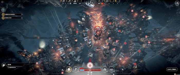 資源囤積一定跟上煤炭的消耗節奏(我在暴風雪來之前就把煤炭囤積到20000了)保持,然後木材和鋼材採集是不需要採集站的所以基本一鋼材廠和木材廠就夠了,食物方面在前期也是一獵人小屋加二溫室就可以滿足300左右人口消耗(不是湯)。