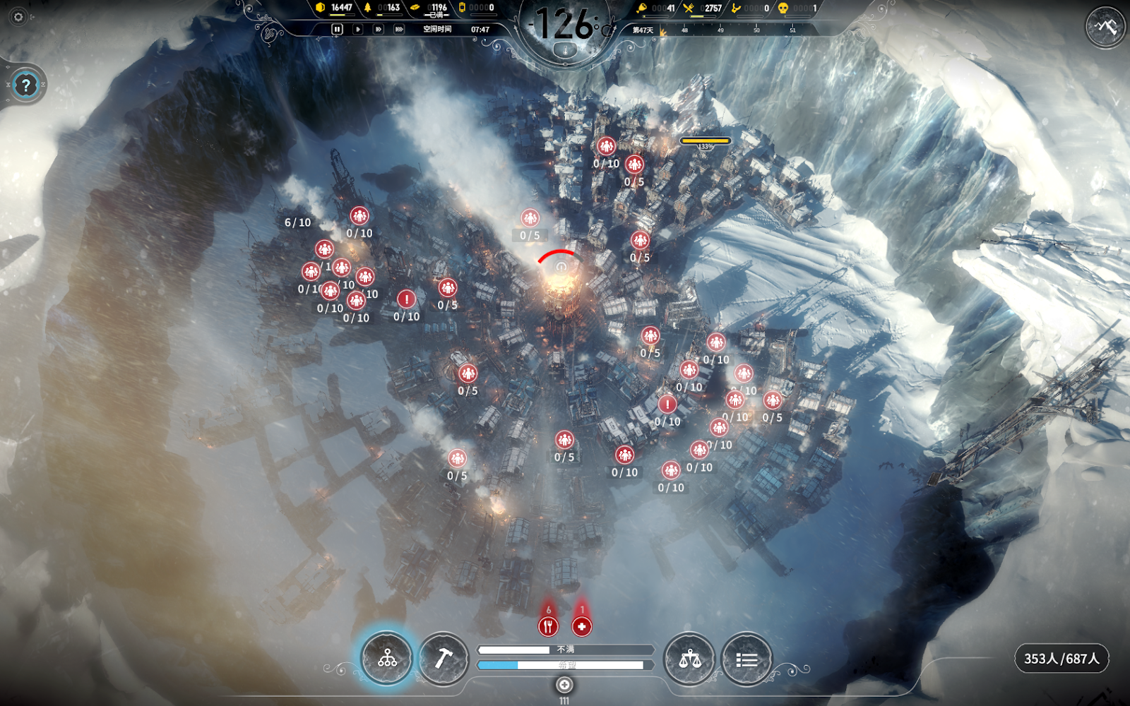 這些弄好之後不滿較低(因為只有科研開延長),基礎食物也有保證了。準備應對第一波降溫。