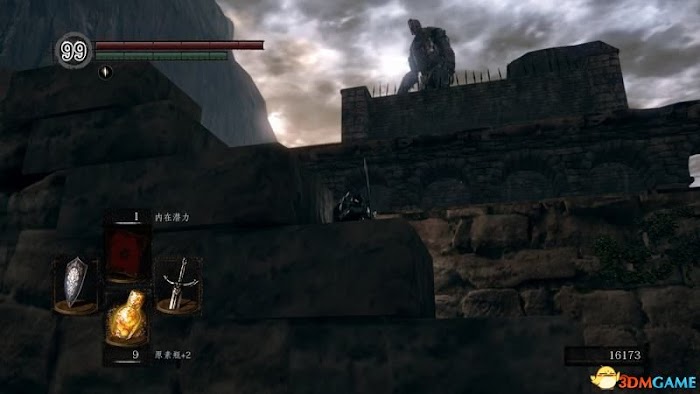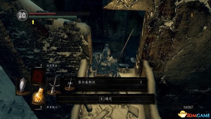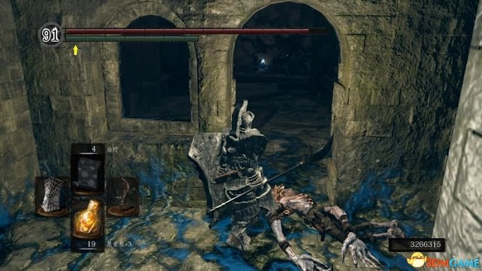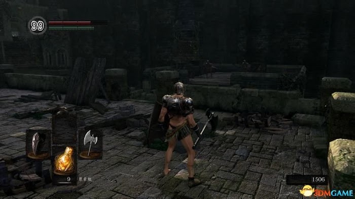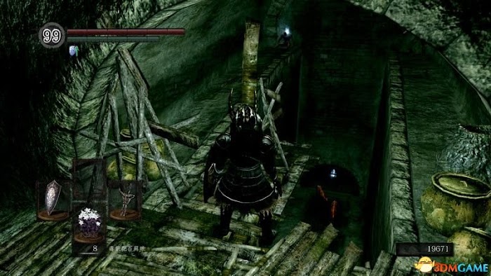 裡面會遇到一個射箭的不死人,沿牆壁左手邊可以拾取盾牌。