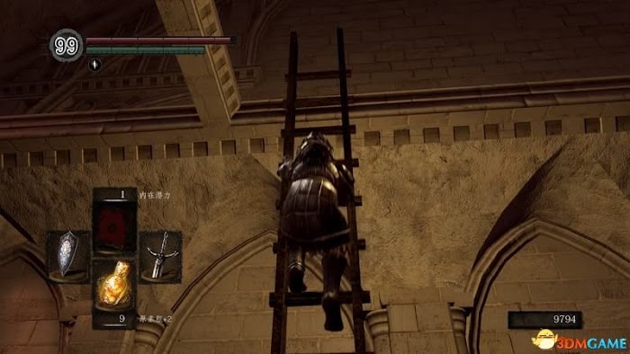 殺死通道裡的3個不死人練下手,然後順著梯子爬上去
