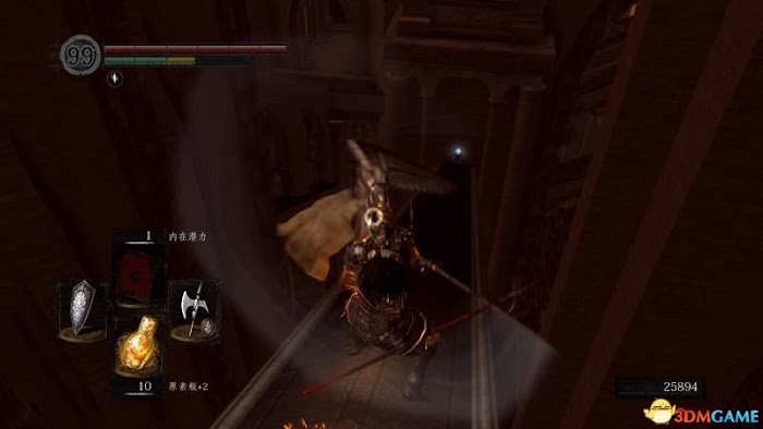 如果元素瓶不滿也可以回頭走下樓梯回篝火補充下再來打BOSS,不過篝火休息過沿路小怪都會復活。