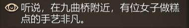 與嚴樂對話,之後【坎】判定,出示【老舊的香囊】,前往橋邊。