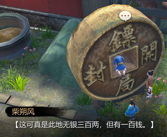 碰到個富商開箱子,暫時打不開,需要 八卦【坎】點滿,裡面是機關碎片之一,後期再來取