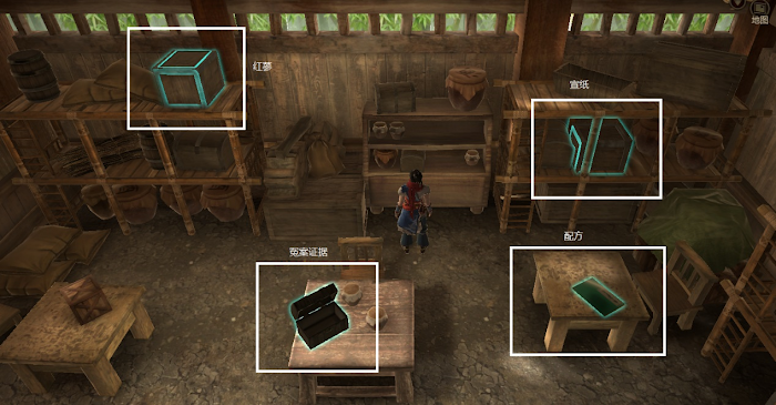 進入【嚴氏中藥行】,門口乞丐會攔一下。房間調查得到【老舊的香囊】和【嚴樂小時候的畫】