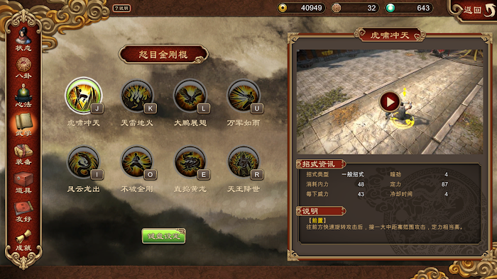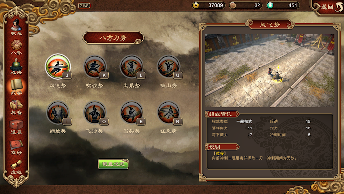 主線崔捕頭給的石頭珠子,去大理寺石獅那邊獲取。後兩招在開封妓院旁邊的城樓上有個和尚想喝酒,給他弄酒可以拿到後兩招。
