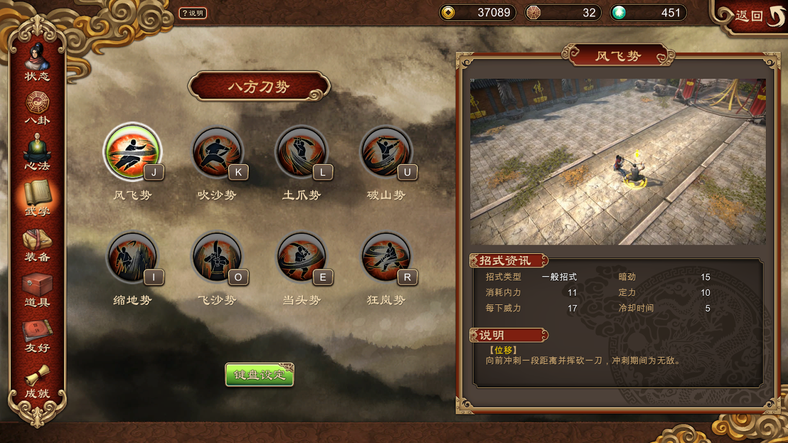 最難獲取的劍法,有很多前置,要學醉仙劍,要幫劍鋒掌門逃脫,最後要做八法門任務等等,基本上三派順著做全部做完,回八法門找李見義觸發去聖地的任務就能夠學到了,學到好像就是滿招式的,主打傷害,用上手了是不怎麼想換其他武學的。