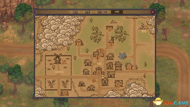 地圖介面則顯示你探索的區域(沒有探索則是卷雲覆蓋)。