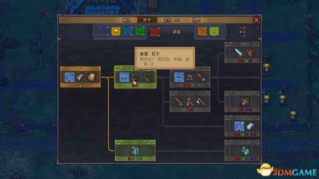 你可以通過技能逐步解鎖各類建築、工具的生產。