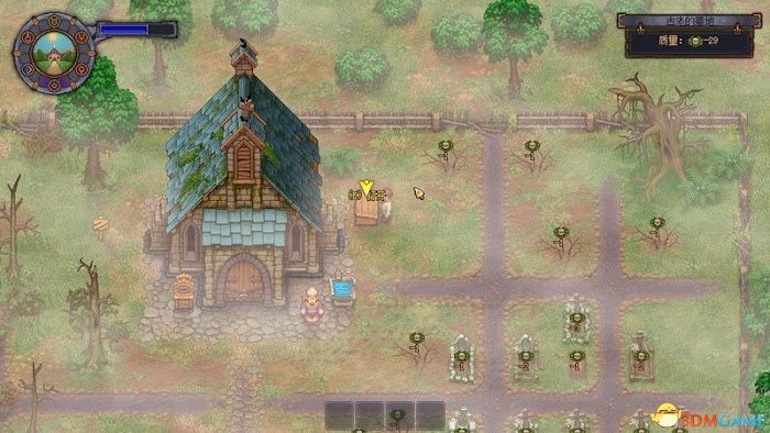要修葺墓園,你可以按E和墓址互動,可以看到其品質等級(圖中是負2)。
