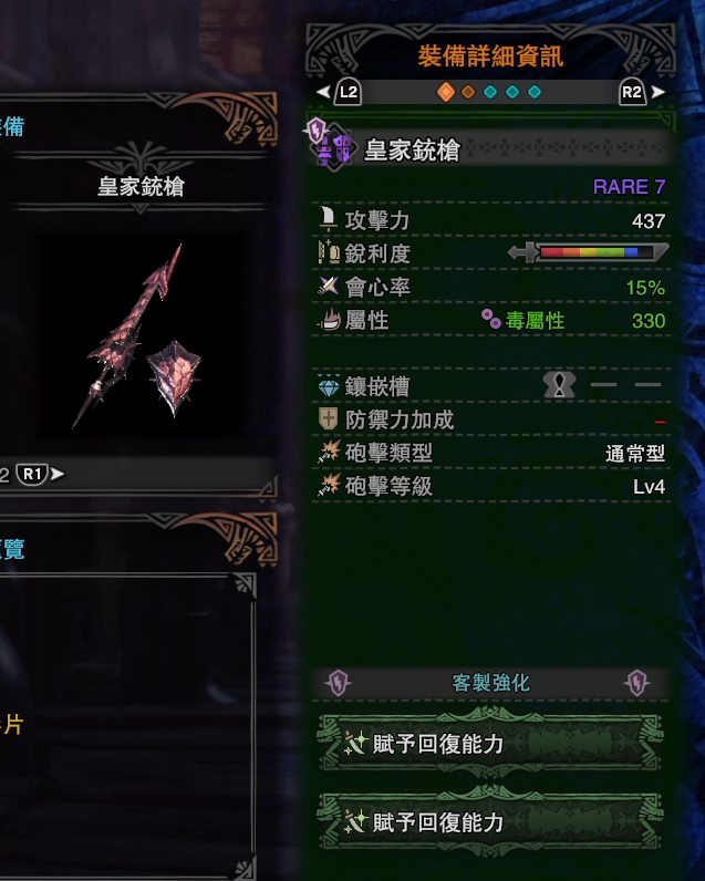 由於銃槍的高打點,你說打不中弱點那是不存在的,退一萬步說,就算不打弱點,無視肉質,穩定300+以上傷害是起碼的。另外你還有個點煤氣大招300+還沒使用。