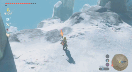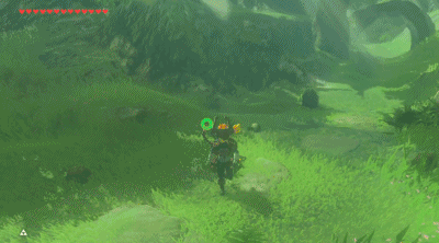 9.舉盾滑行的動作能夠讓林克向前跨越一小段距離,此時取消盾牌並快速的按兩下L引爆炸彈,能夠讓林克直接跨越一個距離相對較遠的平臺(同樣是在一些特殊迷宮中可以作為特殊解法使用)。