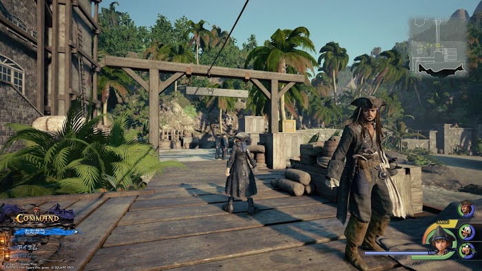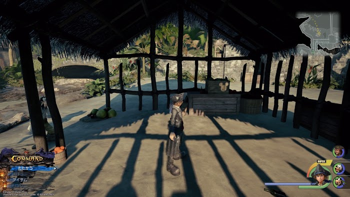 3.ポートロイヤル/波止場,碼頭右側由木頭搭建起來的小棚子內,在箱子上有太陽照出來的米奇圖案。