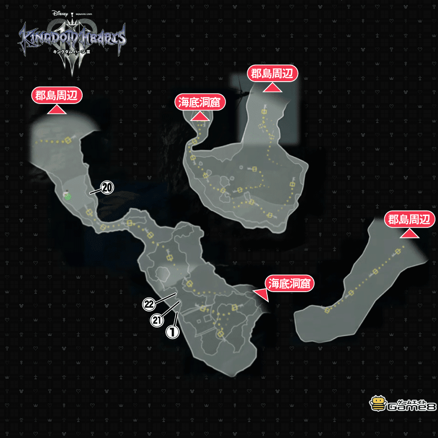 12&13.砂の島,登上小島後能看到一個內陸湖。跳進湖裡即可找到兩個米奇圖案。