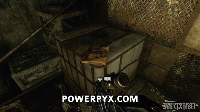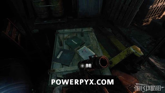 繼續往前走,在上電梯之前的左邊可以看到一個板條箱,日記就在板條箱上。