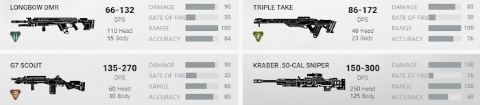 G7偵查槍,超高的DPS,完美的射速,柔和的手感,很接近與MINI,因為Apex有倒地護盾的原因,如果擊倒之後靠狙擊槍補人頭難度一般會比較大,這也是很多人不喜歡用狙的原因,補不了刀,最終被敵人的隊友救活,白打半天還暴露自己的位置。