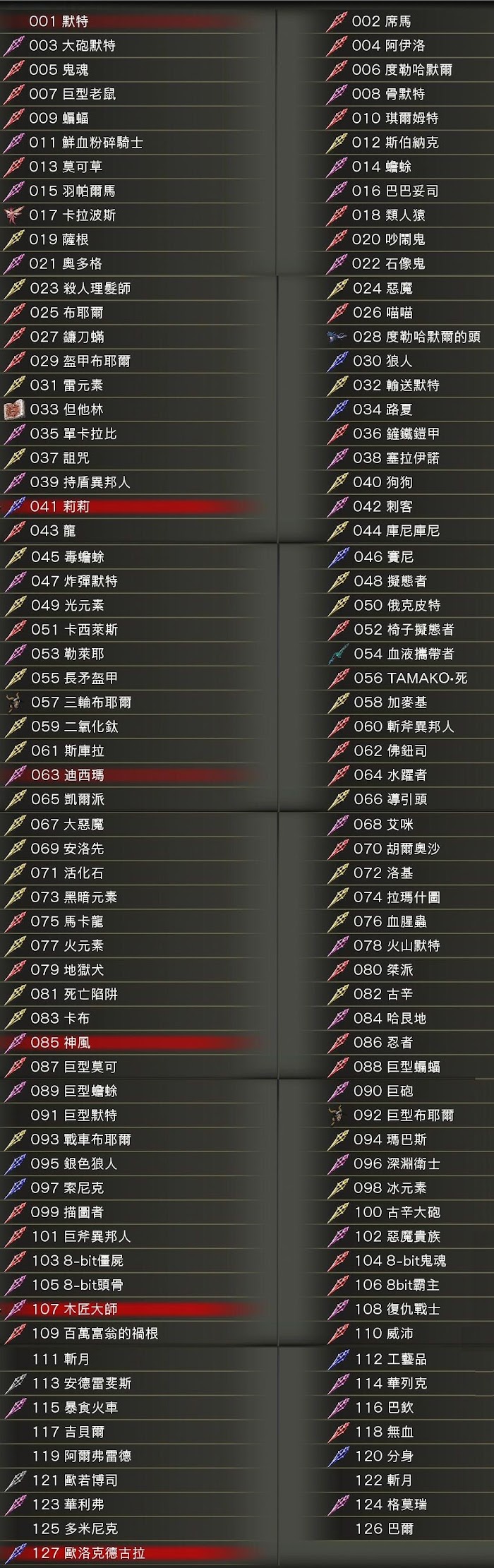 054 | 血液攜帶者 | – | – | 銀 | 8% | – | – | 粉碎的魔劍 | 5% | 4% |