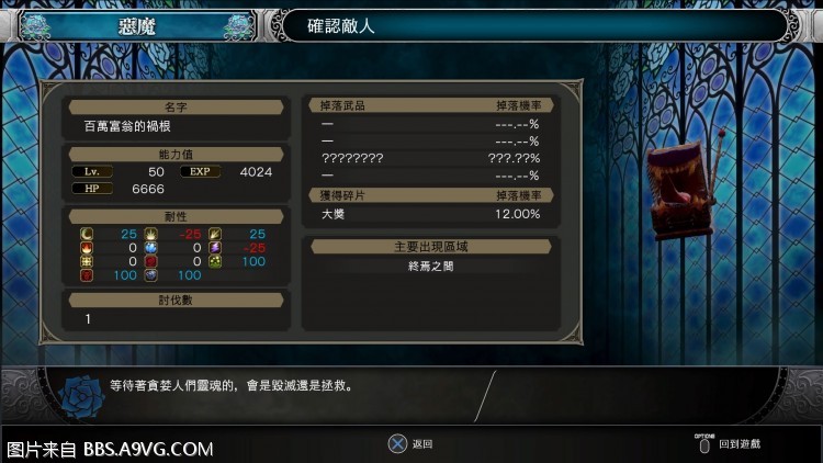 | 該敵人只有從寂靜花園出發才會遇到,想要刷的話打一隻後去邪惡橋樑方向下車,然後回頭上車回寂靜花園,再上車才可以刷到 |