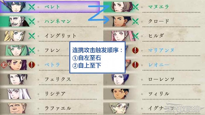 ☆如果觸發了3人以上的連攜攻擊,系統會按照出擊名單的順序來觸發,最多觸發3人。