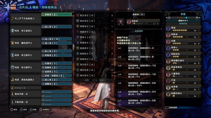 此外,配裝裡面基本是都能上攻7了。因此這裡開始配裝不再自帶地學以及不屈。畢竟要肝調查這兩東西就不管用了。