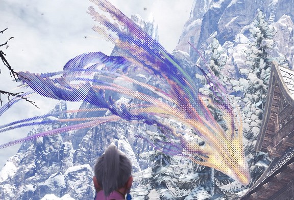獎盃“浮空虛幻”,月語天母,限制條件是永霜凍土夜晚+晴天,出現於最高的山頭,也就是鋼龍的殼的右邊那條路。可以先到5區用望遠鏡看一下山頭是否刷出來天母,刷出來了再爬山,建議前半夜把天母刷出來,因為天母只出現於16分鐘夜晚的前13 分鐘,太晚刷出來,可能爬上山天母就消失了,爬山一定要熟練,天母停留時間約為3分鐘左右。具體刷天母的方法:接一個永霜凍土的任務(非古龍),進5區看是否有天母,沒有重置回營地繼續接任務,有就爬山捉。圖為月辰小屋中展示: