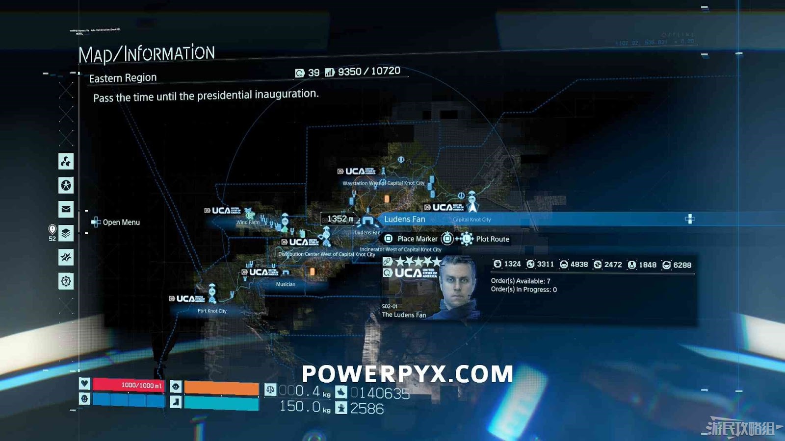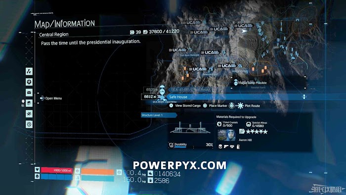 每個設施有5級,在地圖上以5顆星星表示。但其中一些設施需要花更多時間去升級,花費時間最長的是:資深派送員(在2級卡了很久,大概交付20-30次之後他才連入UCA)、第一末日準備者和山區結點城。