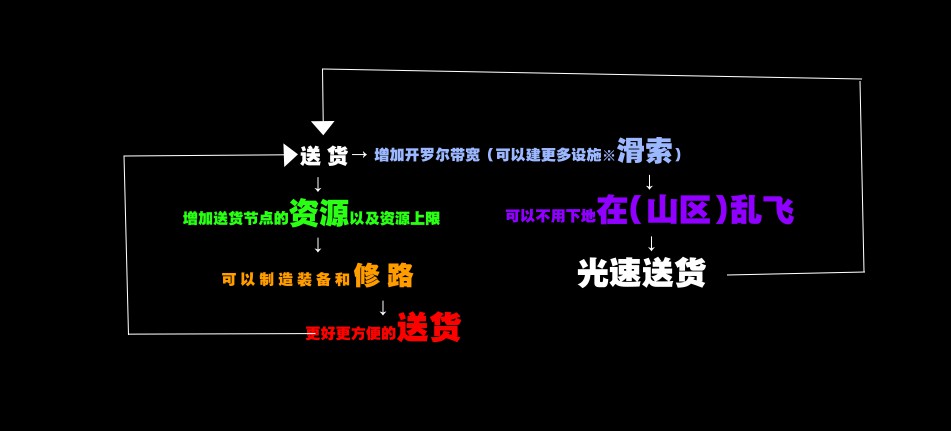 總結:送貨是為了搞資源,搞資源是為了修路,修路可以更快的累計資源,這是一個多麼精妙的閉環。