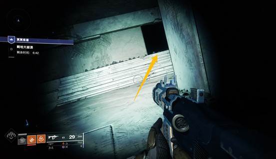 到了該處按照黃箭頭,加速貼牆奔跑即可通過。跳躍時需要瞄準目的地。