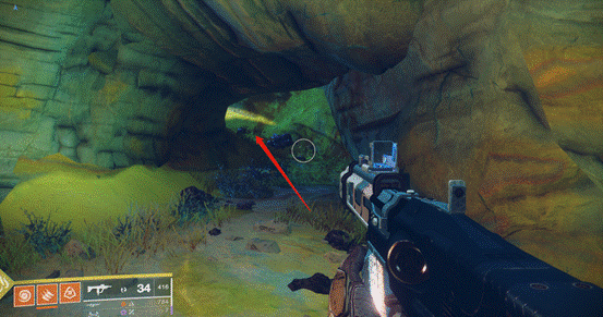 到達該處即為操作考研的最後一關,跳躍過去直走,直到看到圖二入口即代表初步考驗完成,接下來就是開啟與怪物的奮鬥搏殺吧!當擊敗三BOSS後,即可獲得異域狙擊步槍“蠕蟲低語”。