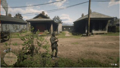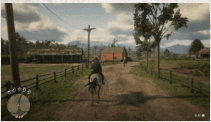 後方就有一個小小的馬房,在這裡可以刷出遊戲中除傳說馬以外的馬匹以及不同的顏色,省去玩家去野外尋找的功夫。具體步驟是來到馬房附近,打開物品輪盤選擇雙筒望遠鏡,然後觀察馬匹資訊看看是否符合自己的要求。不滿意的話就往北方跑,來到如圖所示的紅房子後往回跑,這樣紅門民家的馬就會刷新了,再次來到紅門民家,然後重複觀察馬匹的過程即可。
