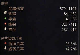 我的攻擊附帶的傷害有三種,顯然撕裂最高,神聖其次,所以我的攻擊型傷害(注意,有些技能是攻擊類型不是法術類型,也算攻擊型傷害)觸發的異常應該是流血。