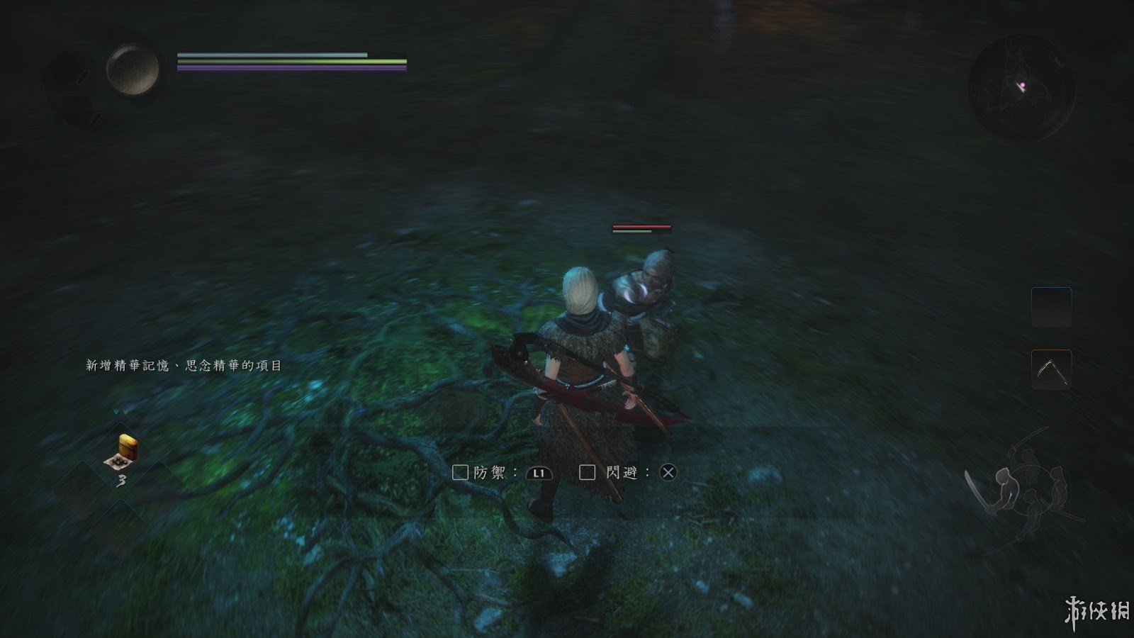 按下L1進行防禦,按下×鍵進行閃避。閃避和成功防禦攻擊都會消耗精力。