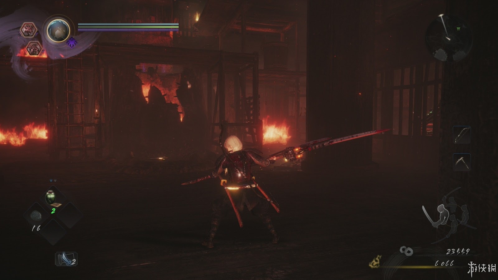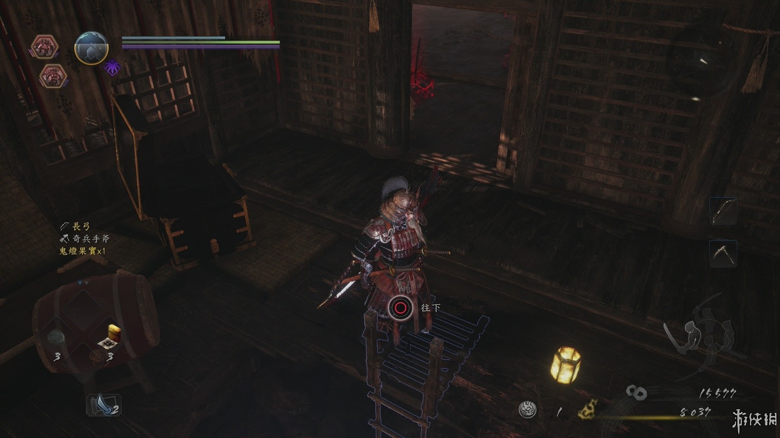 順著梯子再下去,開啟右側的門解鎖通往神社的捷徑,之後再回去解決掉妖鬼。