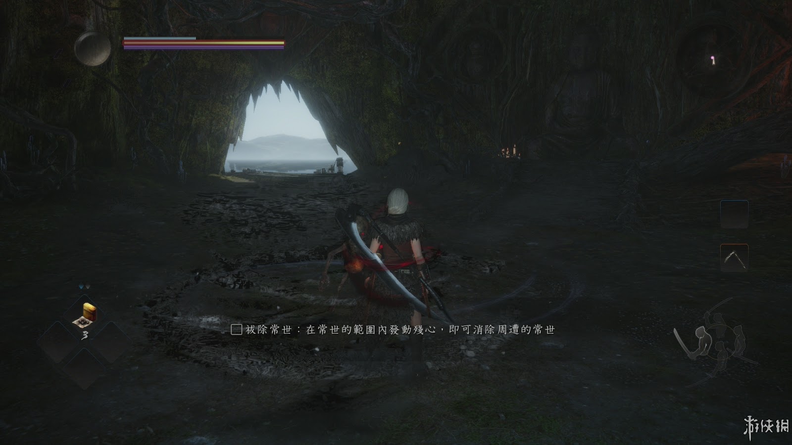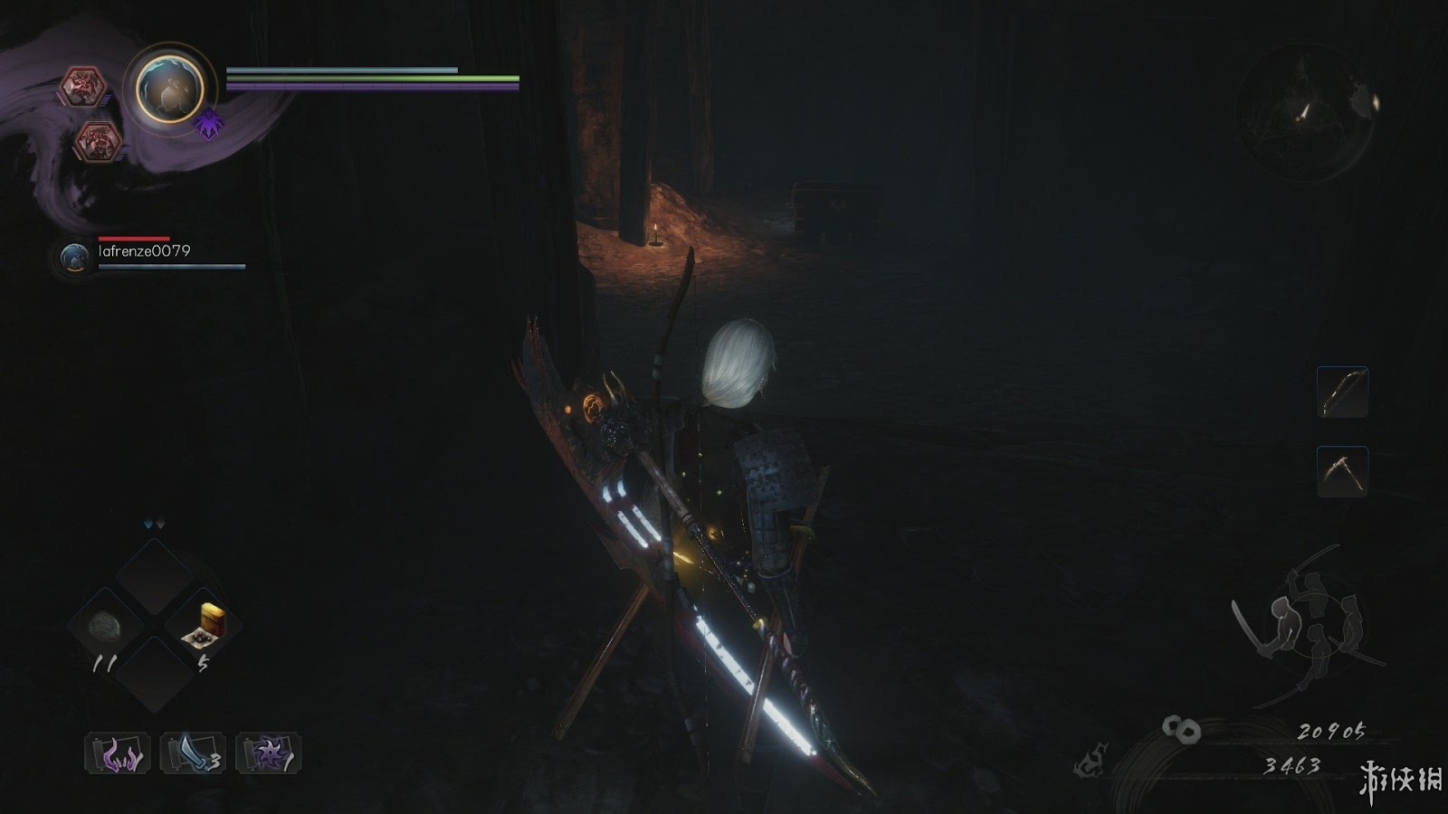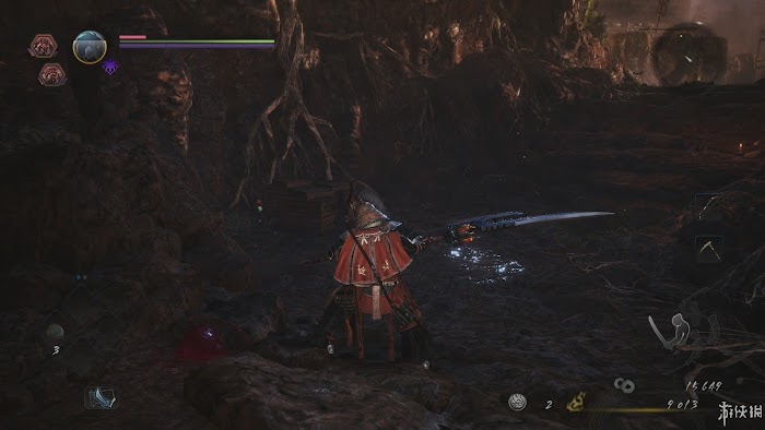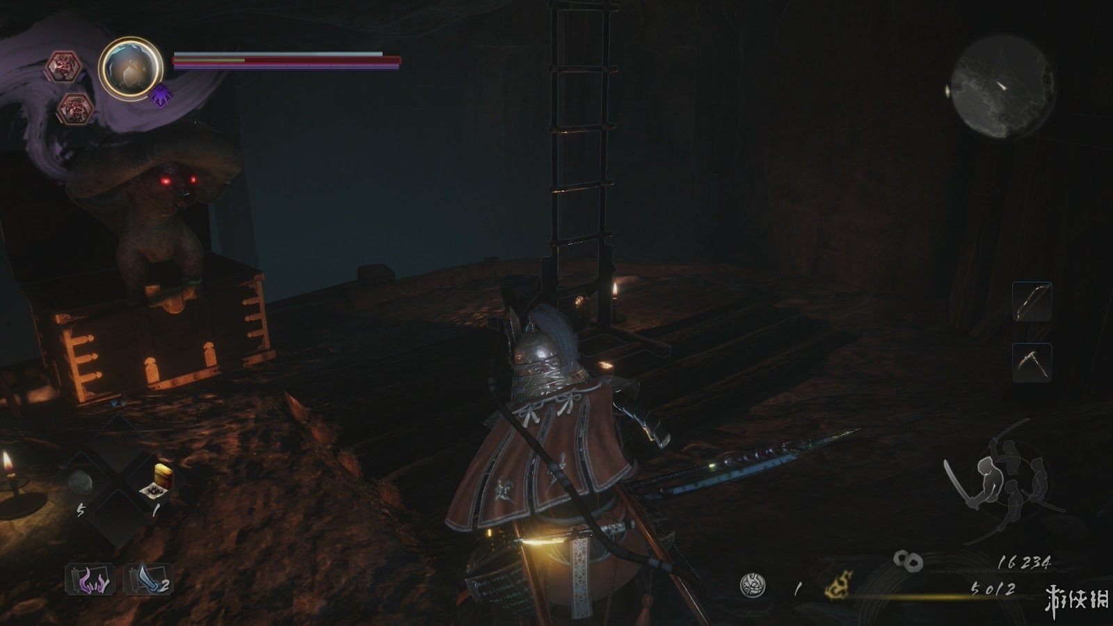 離開神社從正門的梯子上去,會發現中間的火坑已經熄滅了,跳下去後進入常暗之地。下去後會發現一隻獨角多多良,雖然武器不同但打法基本不變。