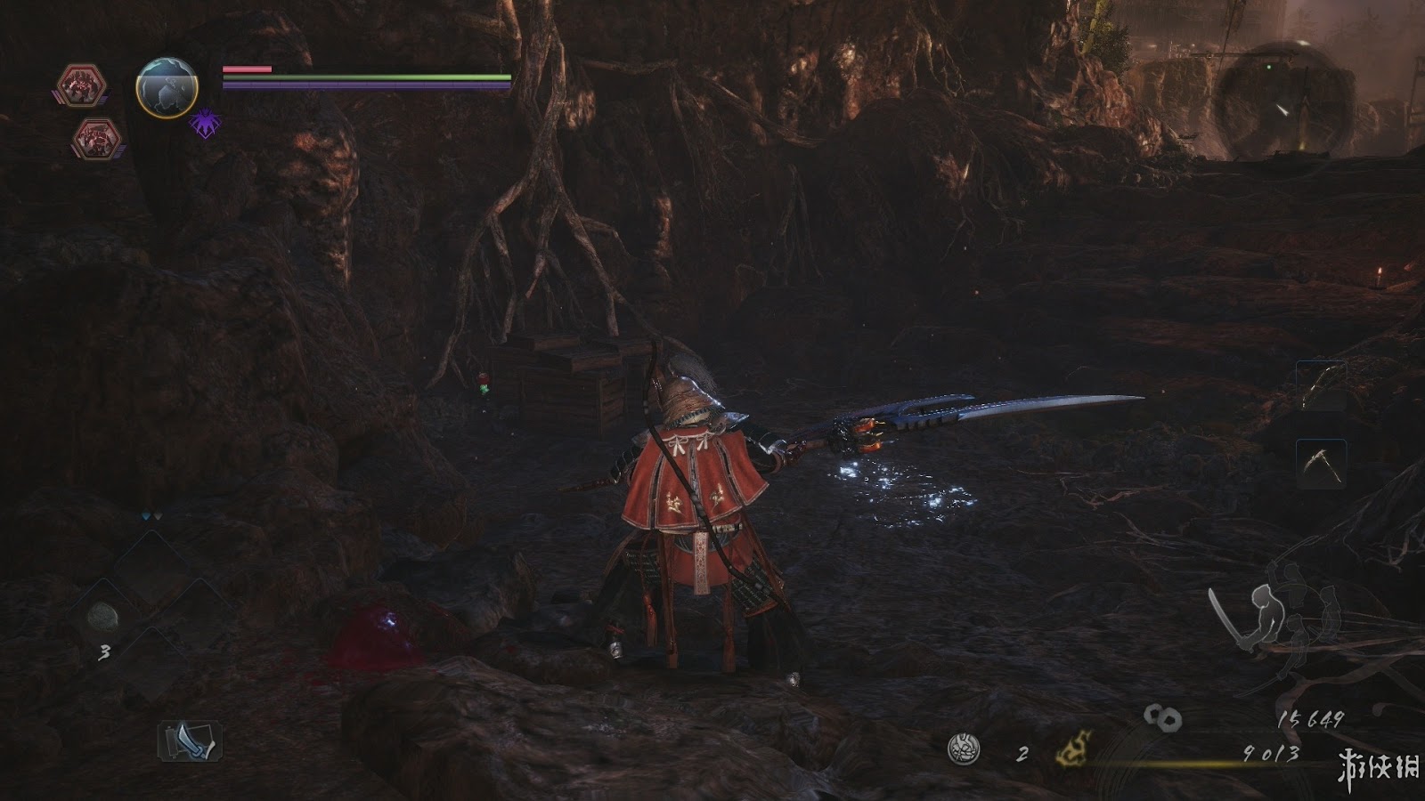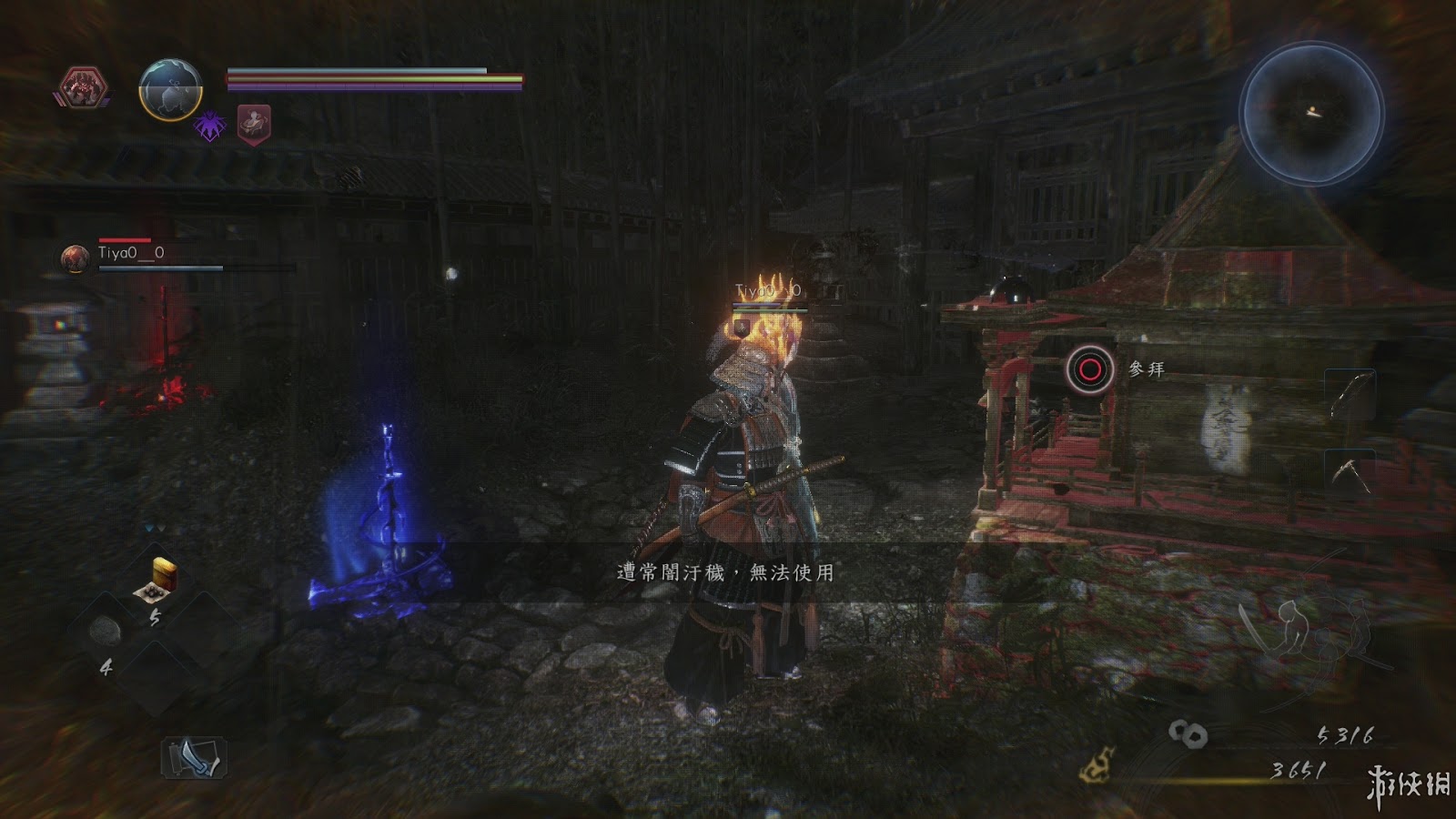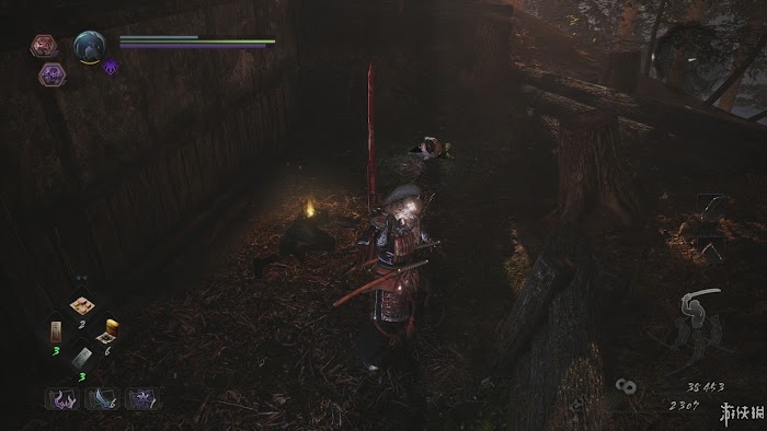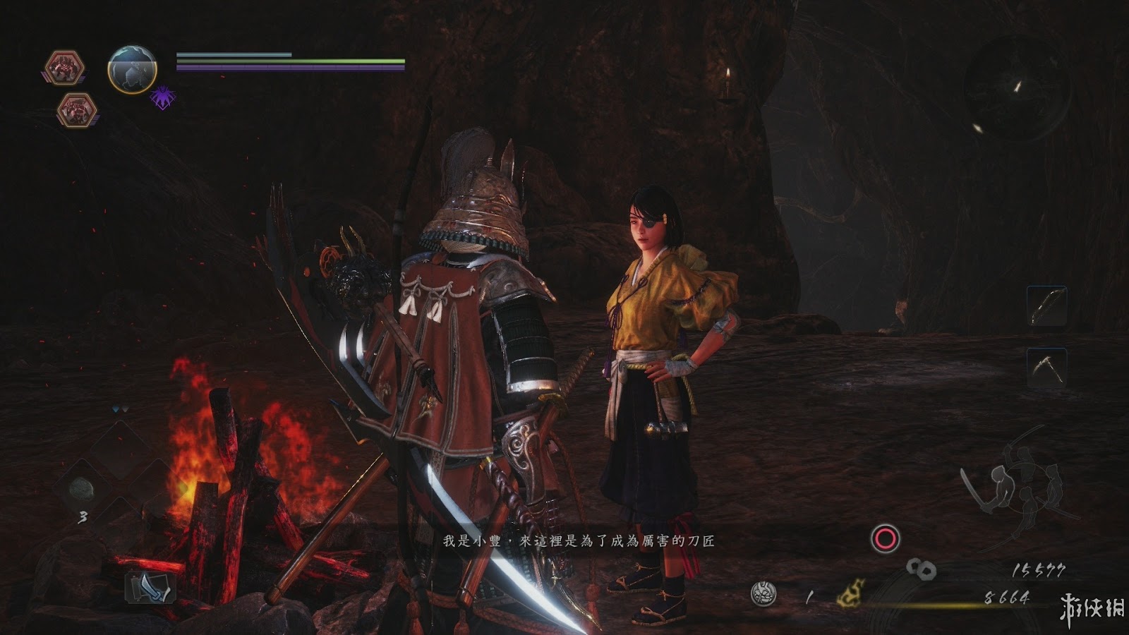 離開神社從正門的梯子上去,會發現中間的火坑已經熄滅了,跳下去後進入常暗之地。下去後會發現一隻獨角多多良,雖然武器不同但打法基本不變。