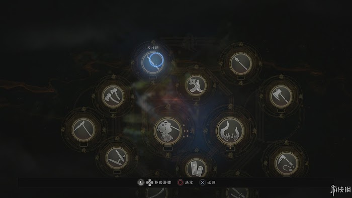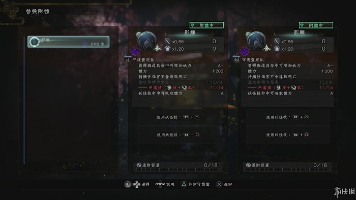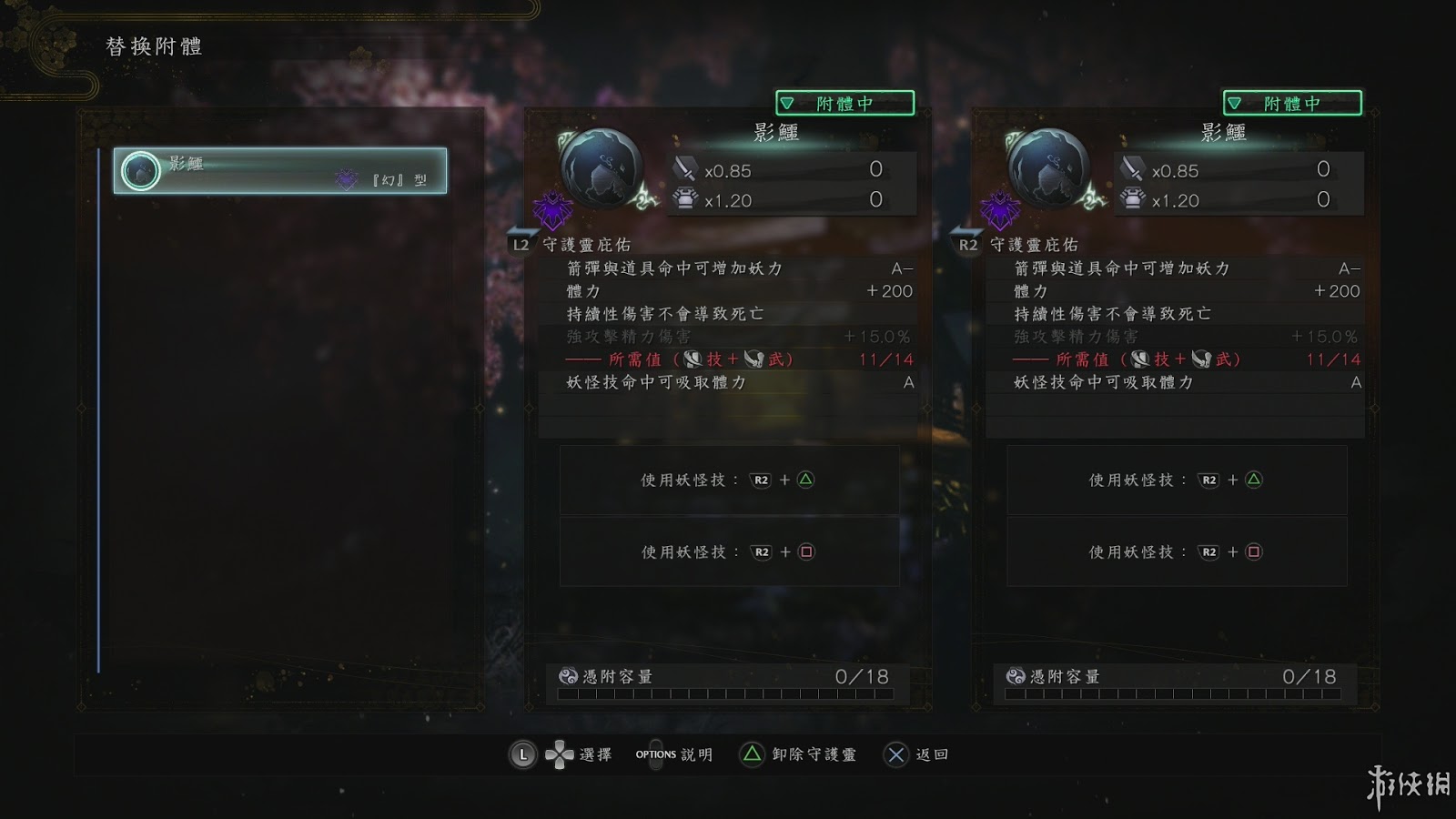 妖月輪·陰:按住L2擺出架勢,再按下R2就能發射武器,命中敵人後就能瞬間移動到敵人身旁。