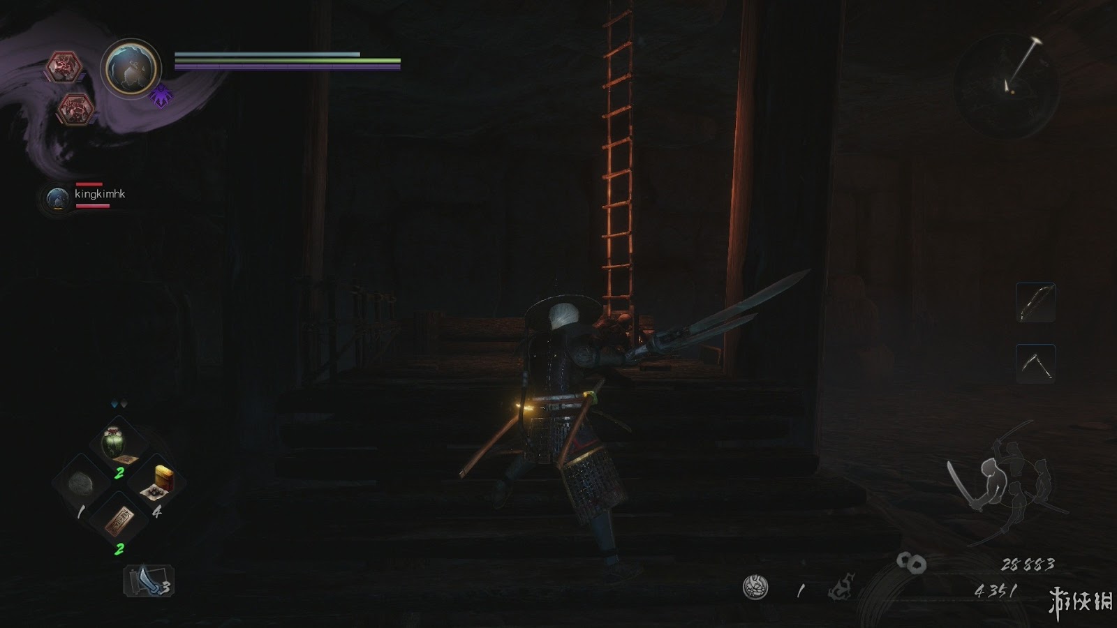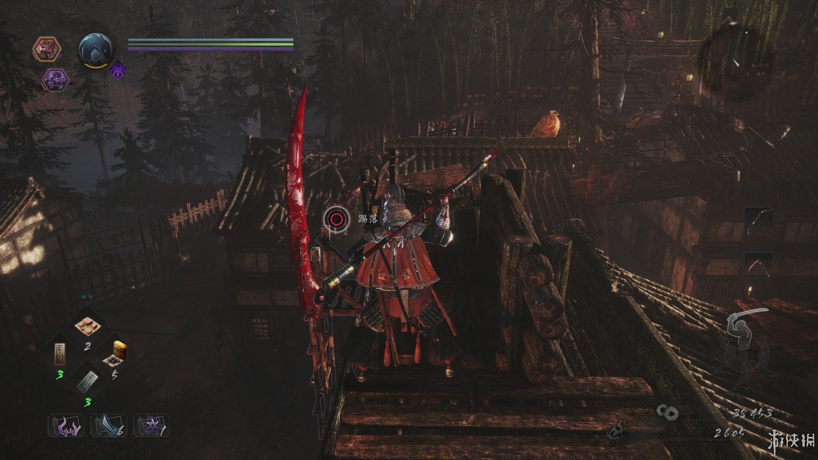拐過房間後踢落前方左側的梯子解鎖通往神社的捷徑。
