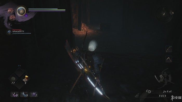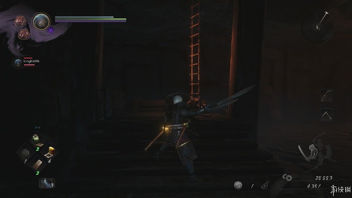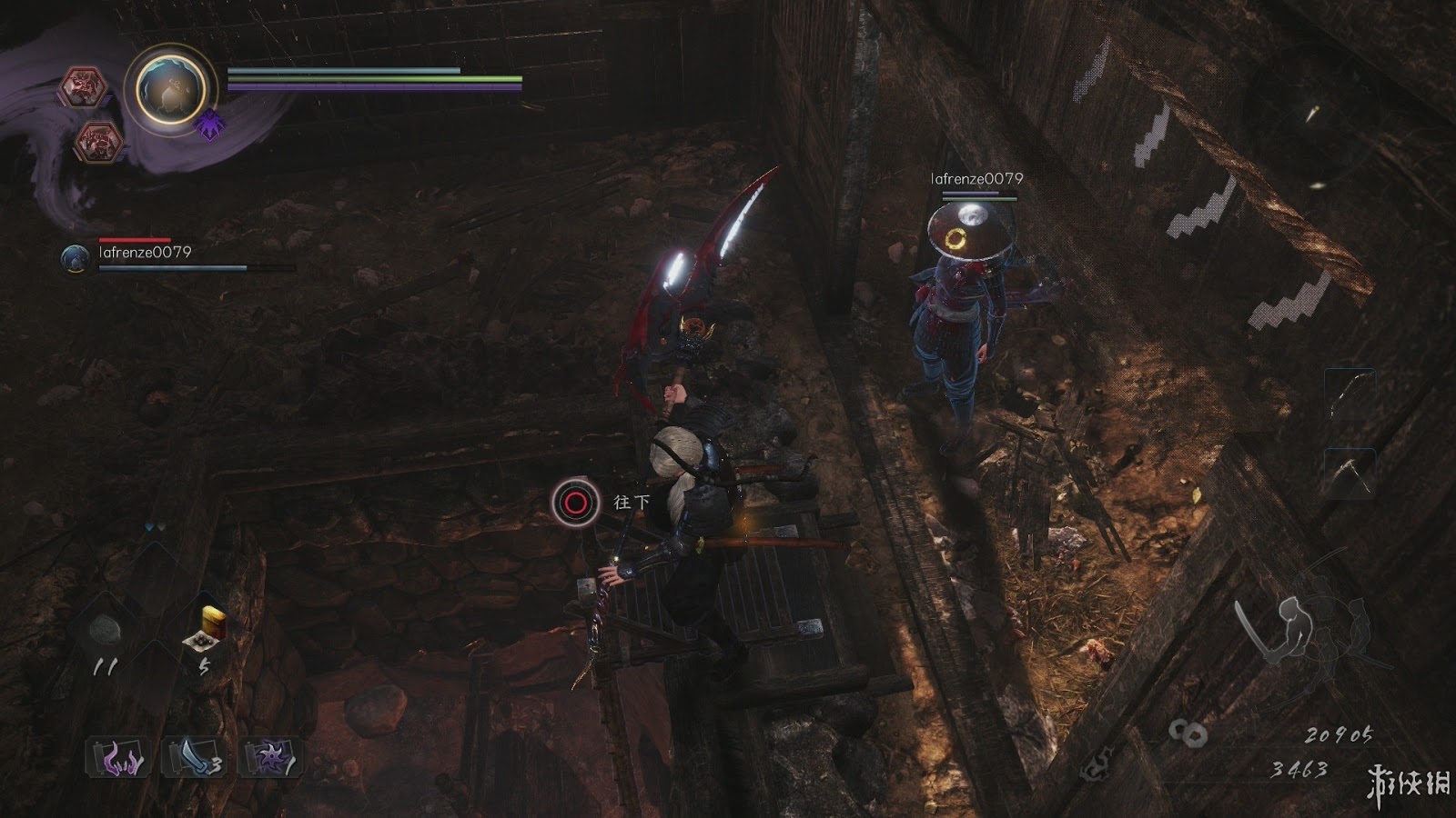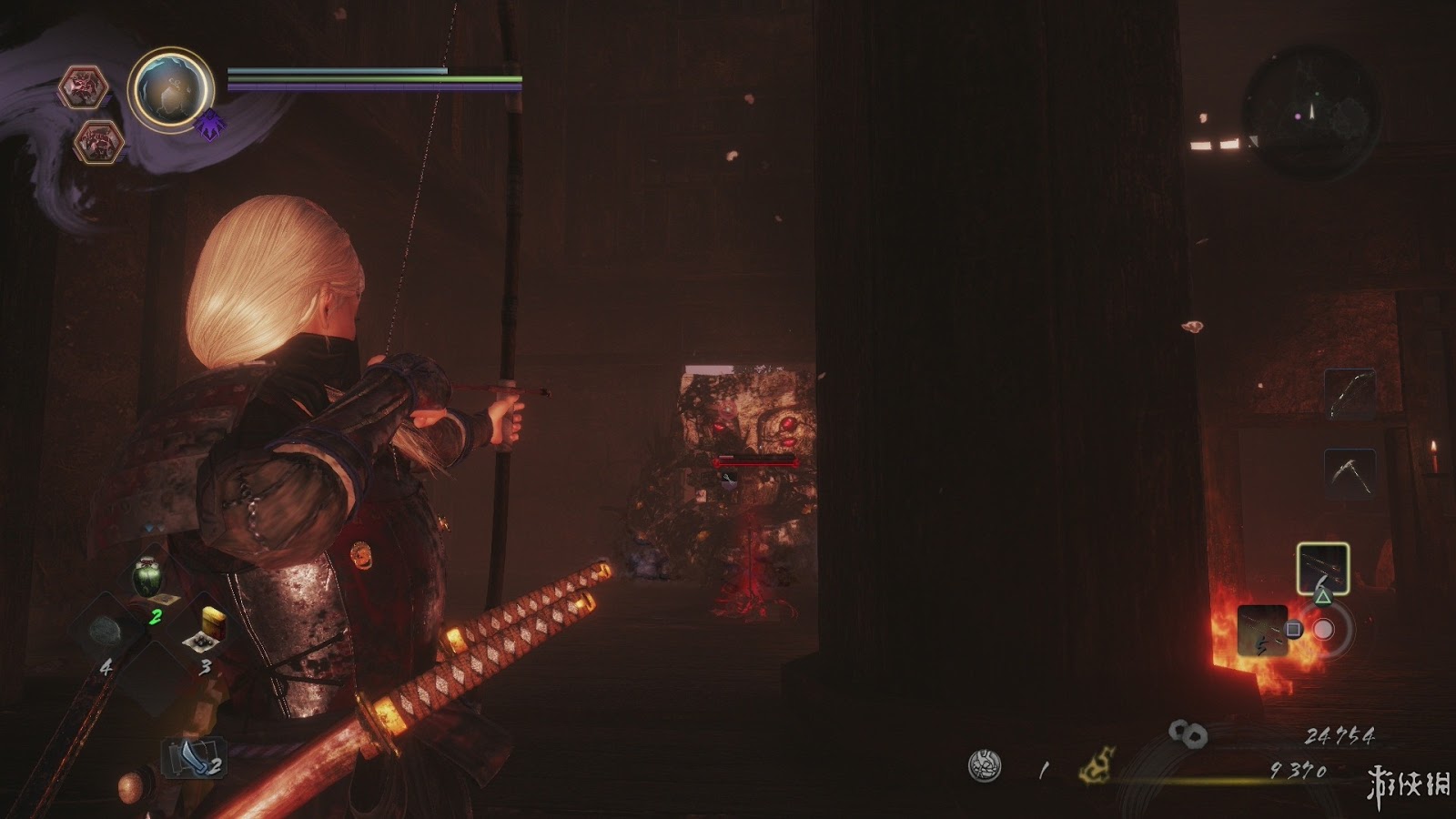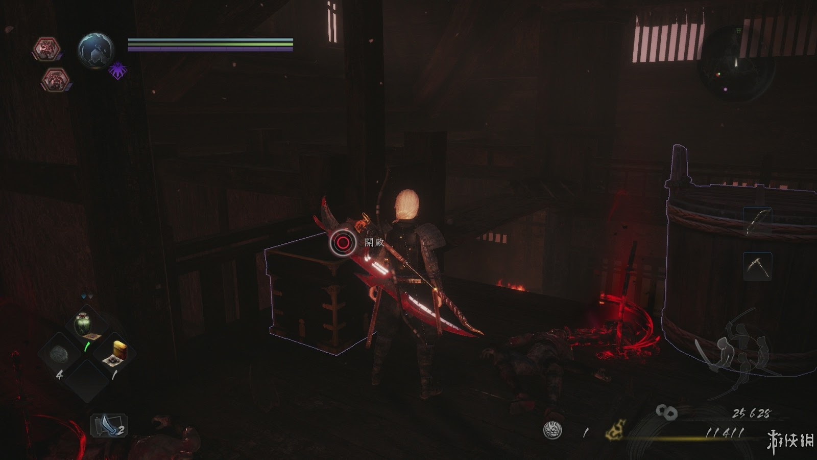 從樓梯下去,前方有一個餓鬼和躺在地上的弓箭手,可以先在上面找個角度狙殺弓箭手。