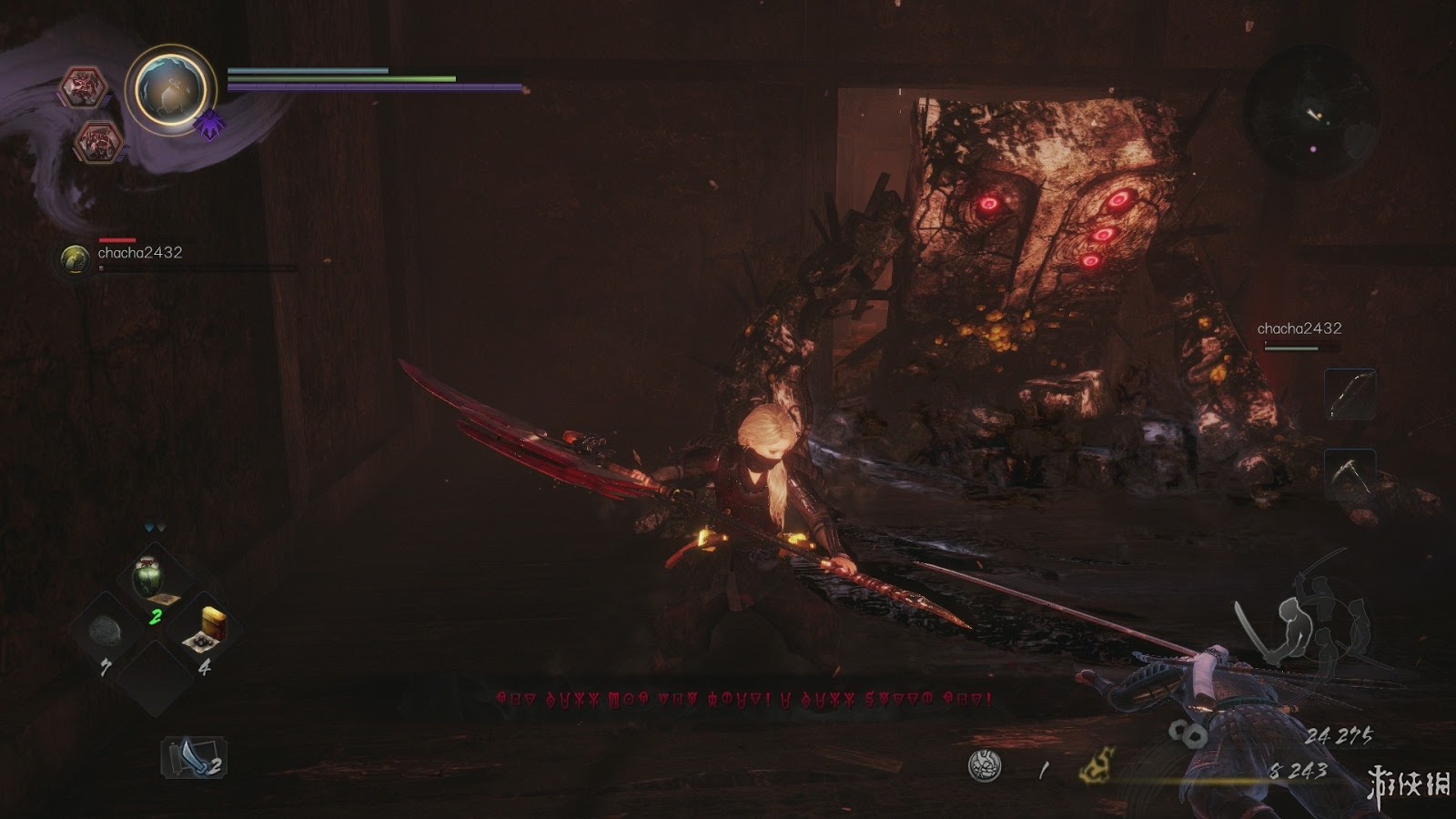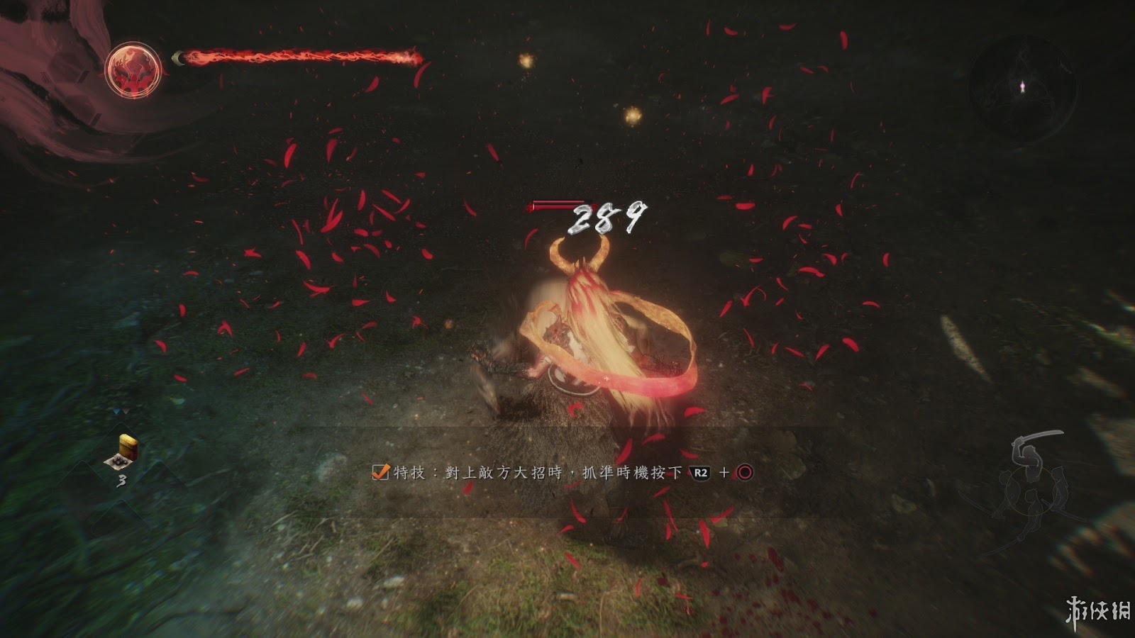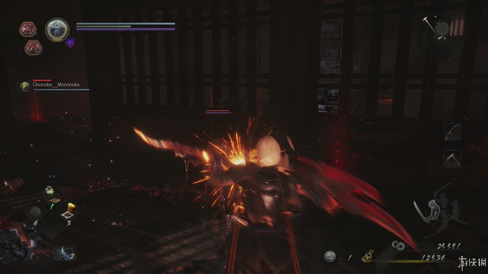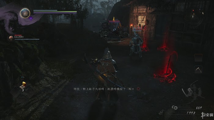 這是玩家第一次遇到獨角多多良,他的攻擊前搖都比較大,注意不要貪刀可以通過妖怪技和妖反來製造硬直。