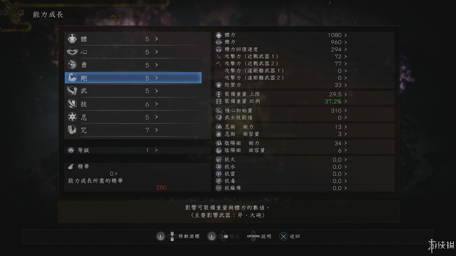 剛:提升可裝備重量與體力上限,並能提升斧和大炮的攻擊力。