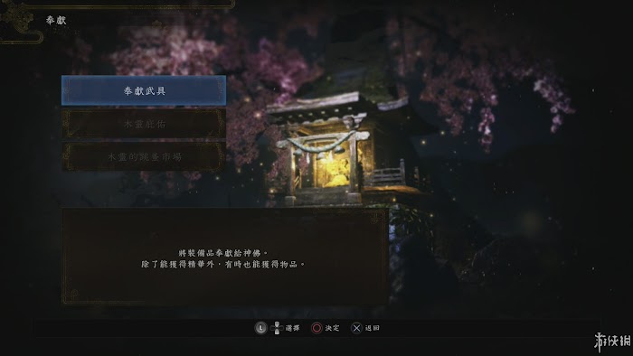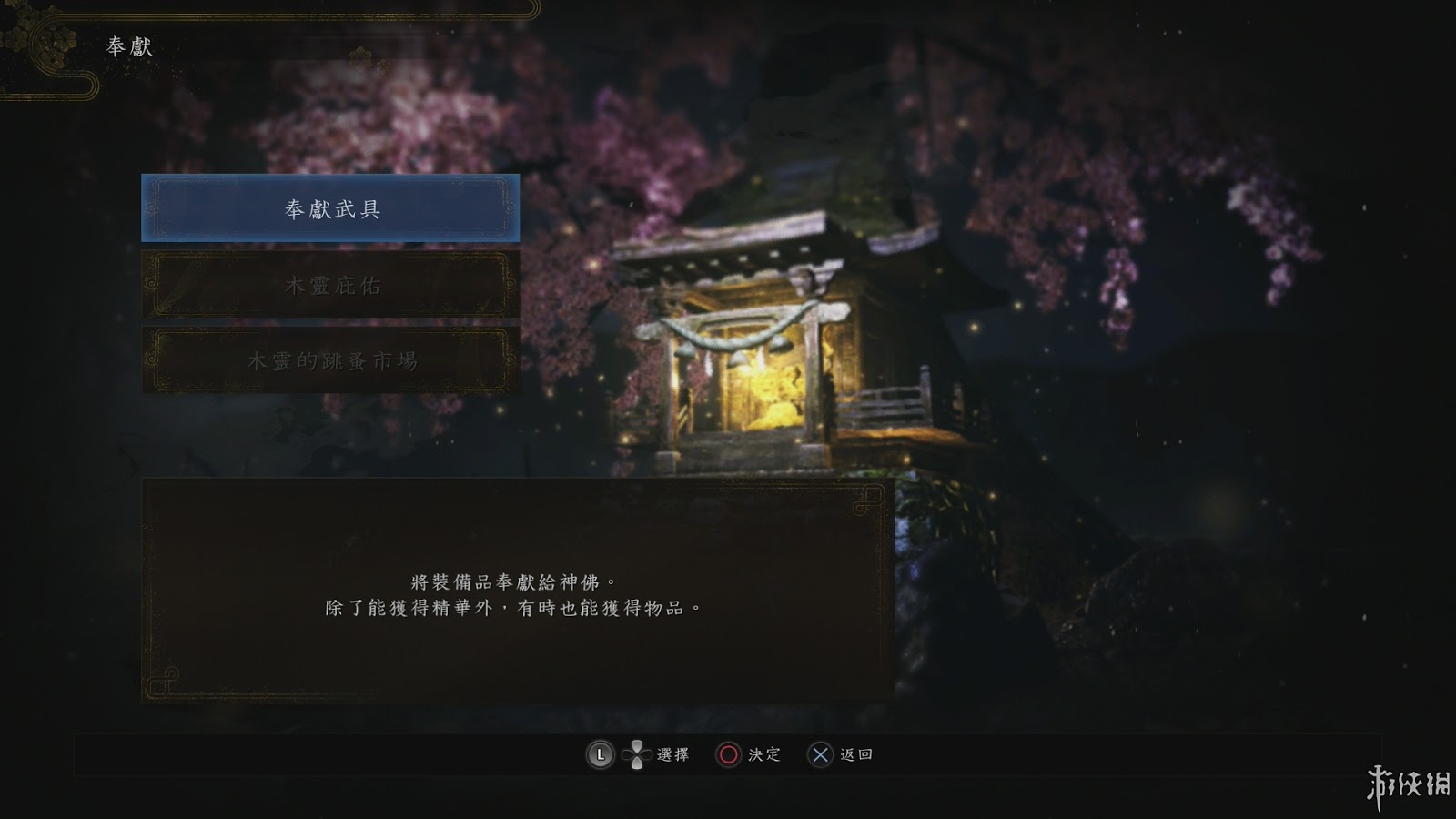 神社包含奉獻、賜物、能力成長以及替換附體等選項。
