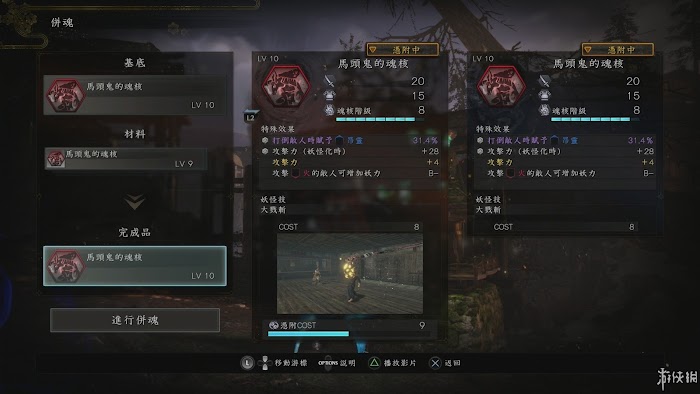 選擇一個基底魂核,再加入一個相同的魂核作為材料就能合成一個更強大的魂核。