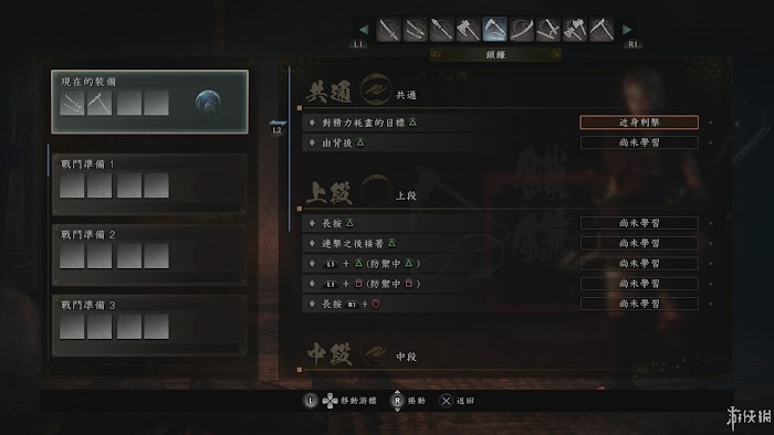 上段架勢:按住R1後按下△,該架勢以攻擊見長,能夠使出威力強大的招式。