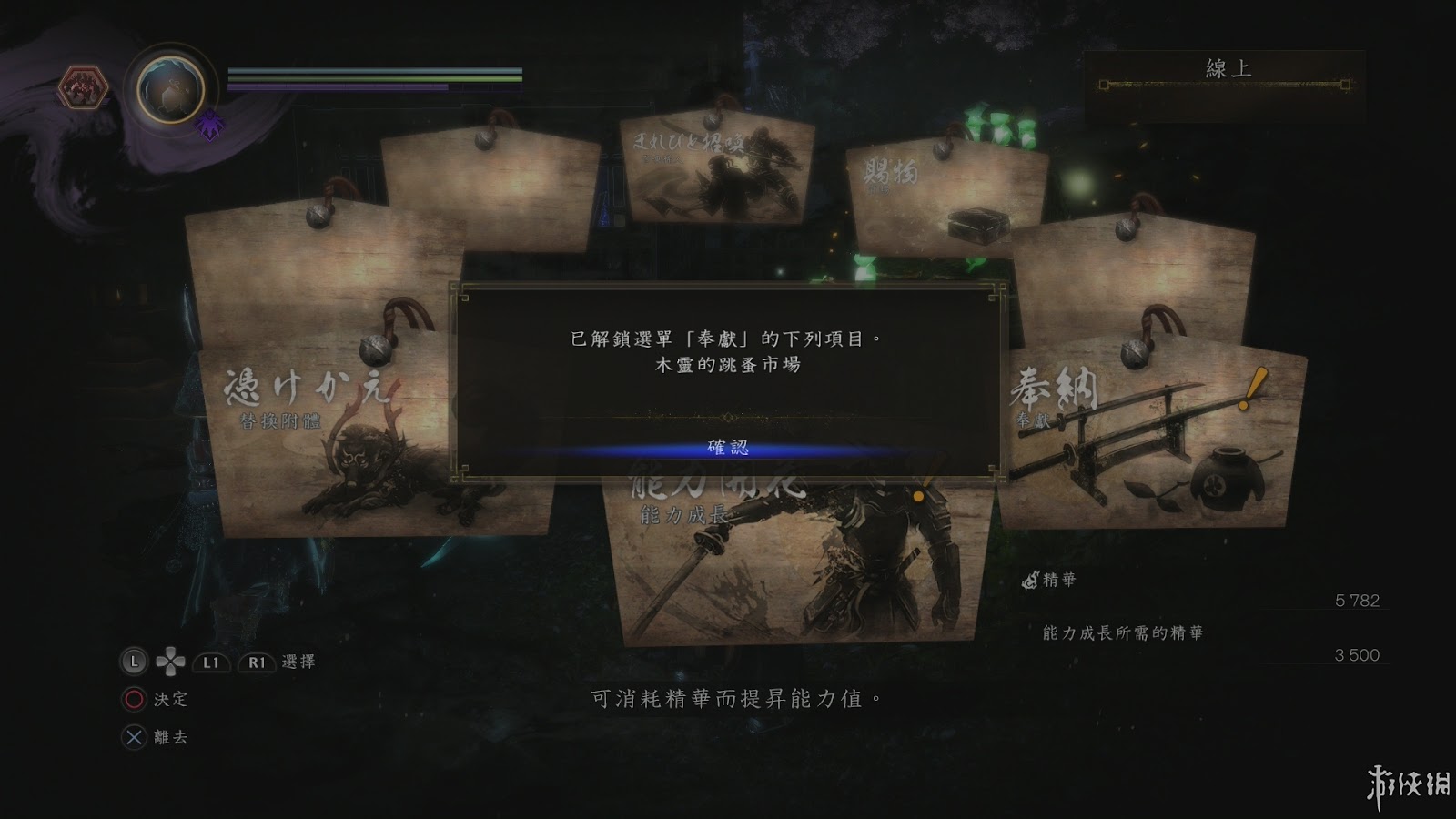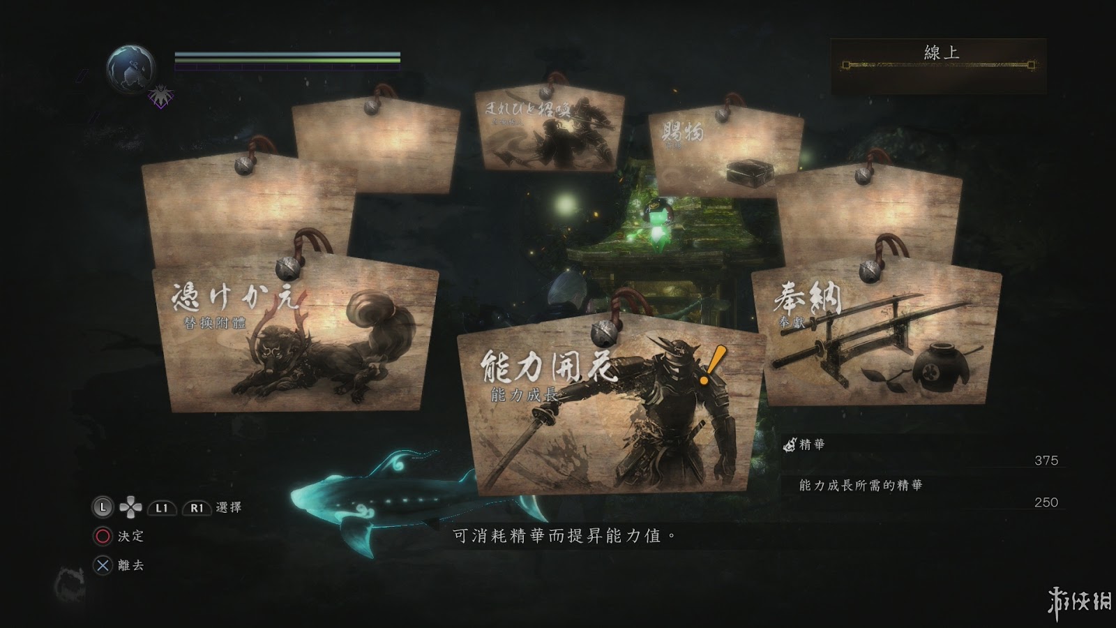 在前方的神社參拜,如果玩家有去成為稀人通過前一個任務身上可能會有多的魂核,此時就能進行拼魂,能夠提升階級以及強化效果。