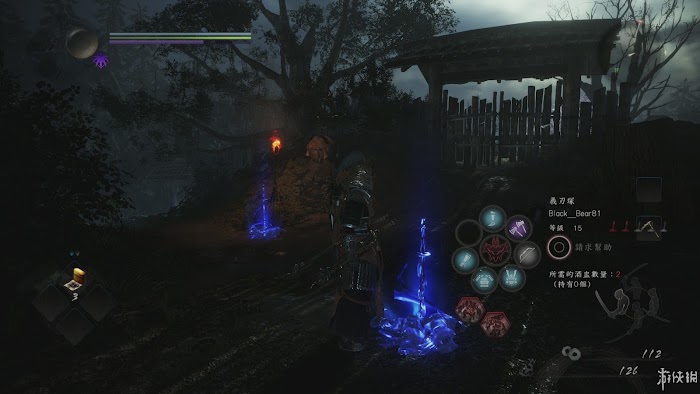 匹配成功就會被召喚到神社旁,自身會有一個高亮顏色,玩家最多可請求兩個玩家助戰。